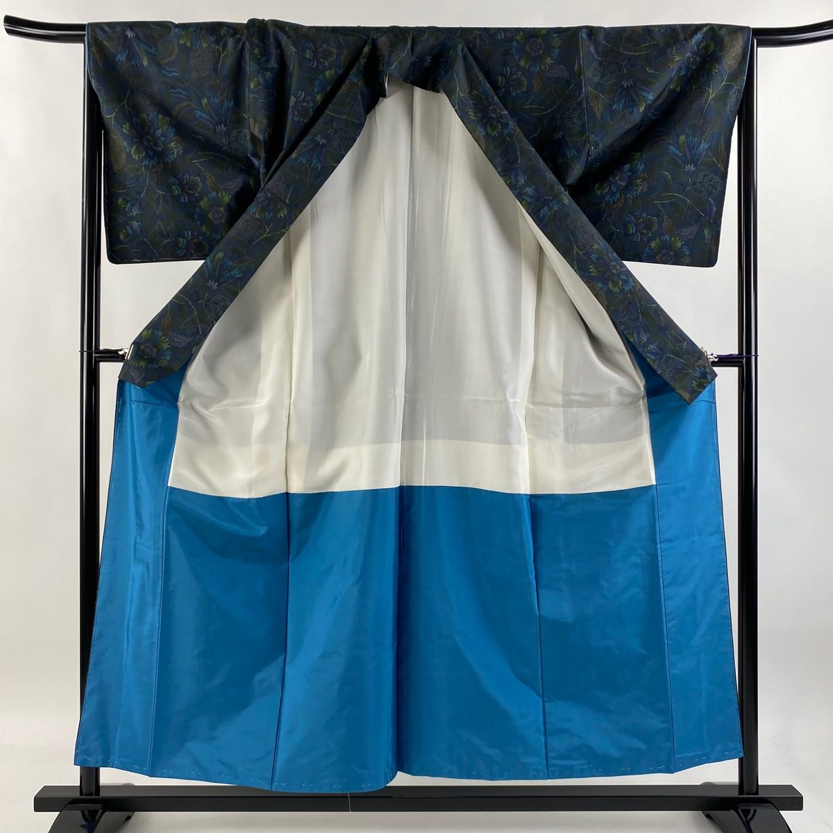 紬 身丈155.5 cm 裄丈66 M 袷 草花 青緑 正絹 秀品