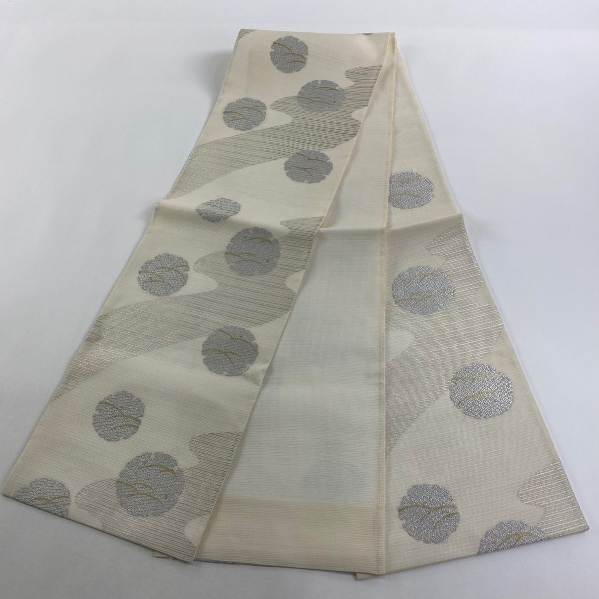 袋帯 秀品 夏帯 絽 雪輪 露芝 金銀糸 クリーム 六通 正絹
