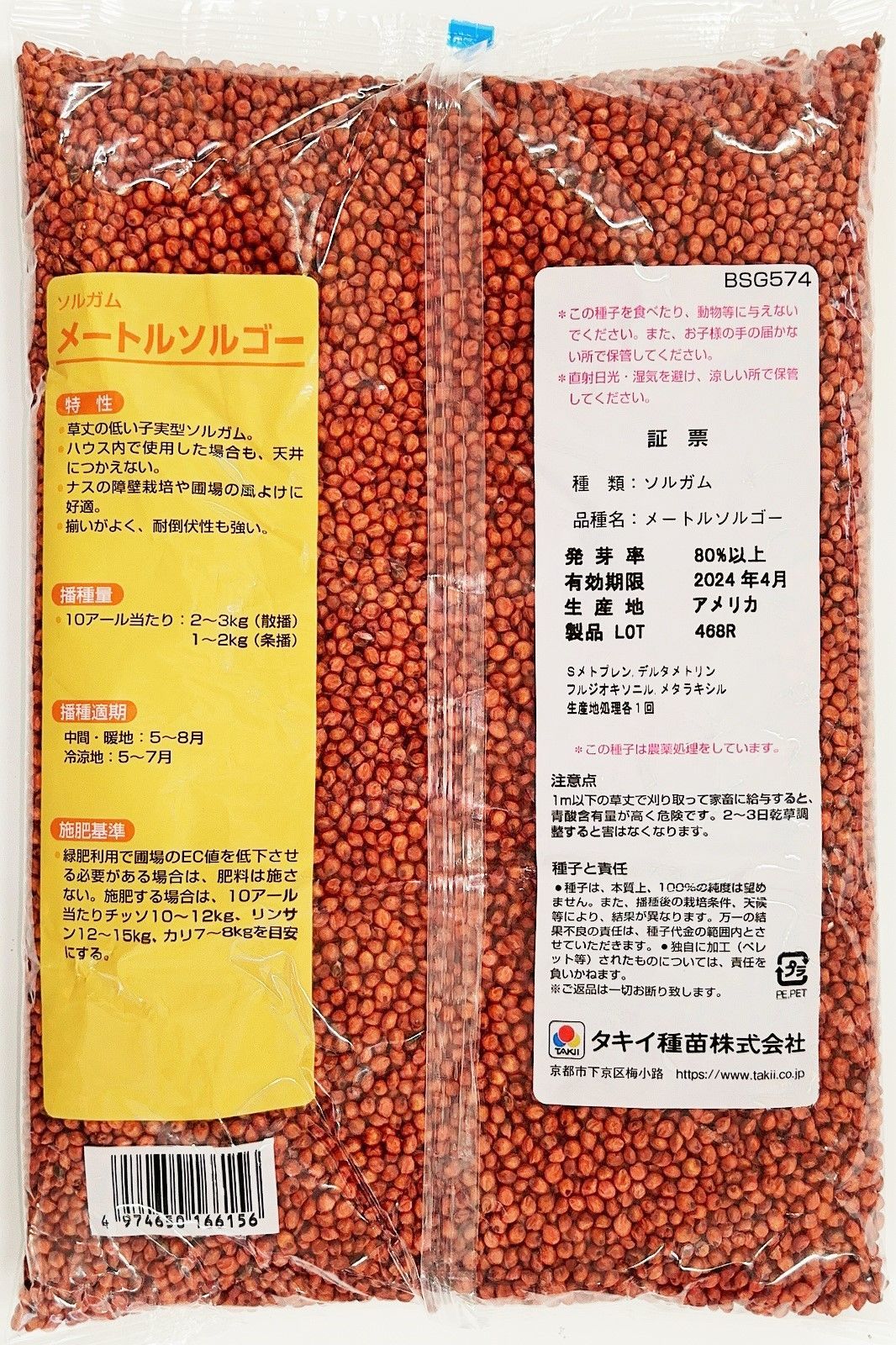 ソルガム種子 メートルソルゴー 10 kg タキイ種苗 種 緑肥の種 夏に強い緑肥