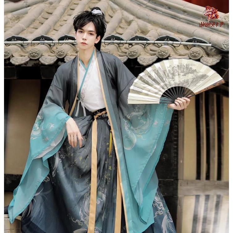 チャイナ服 上下3点セット メンズ レディース 大人 ペアルック グラデーション 白緑 黒緑 漢服&唐装 華流コスプレ衣装 中国古代服装 ハロ