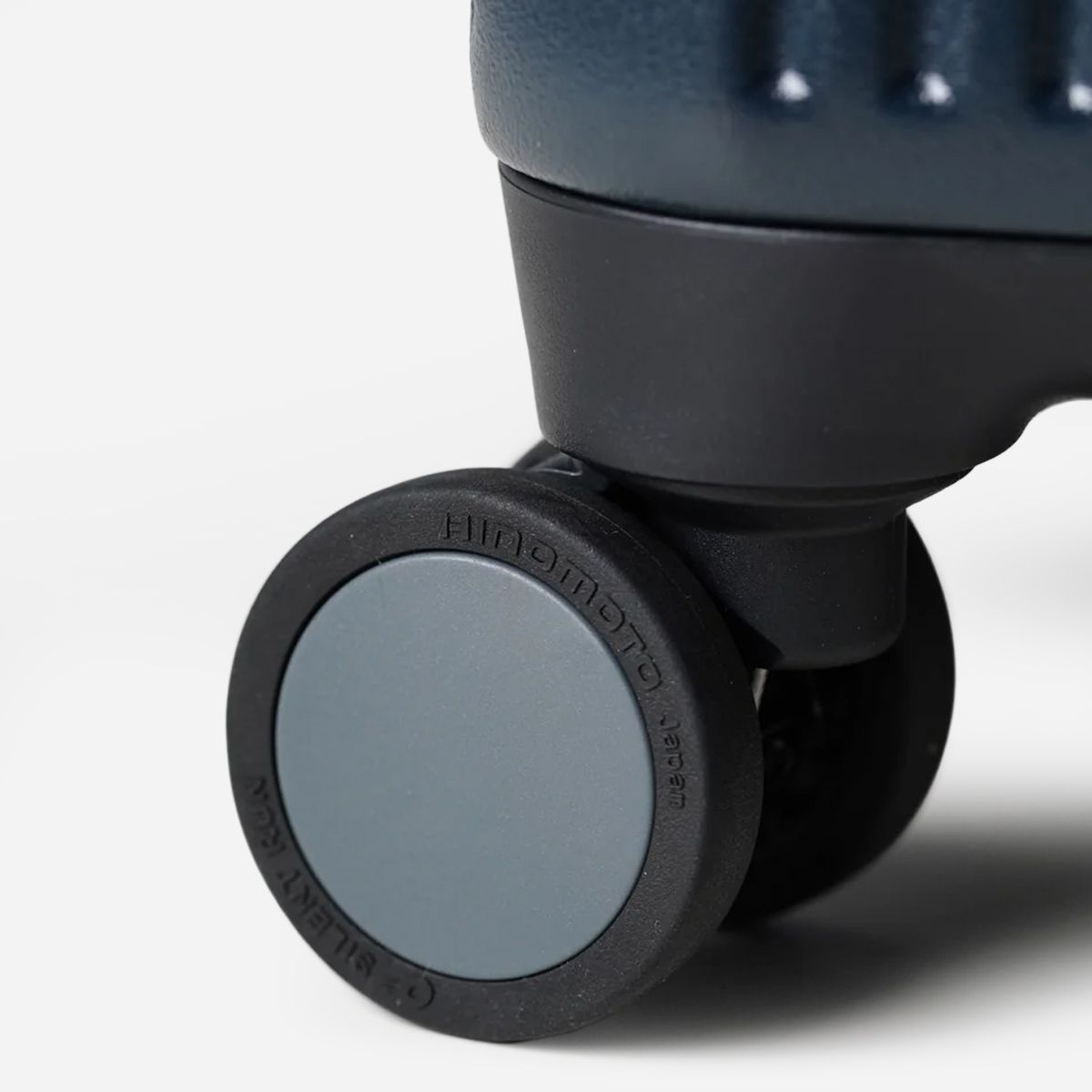 安定性抜群のダブルキャスター。静音性にも優れ、動き出しや方向転換もスムーズ。さらに電車や坂道でも安心できる、不用意な動きの防止に役立つキャスターストッパーも搭載しています。