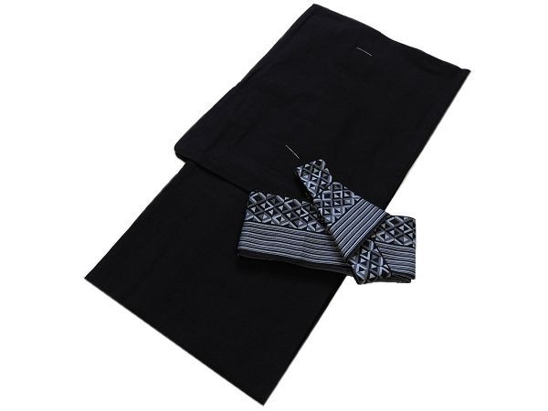 着物美人 送料込み! 男浴衣 綿麻 しじら織り ワンタッチ角帯 2点 LL 黒 m456920
