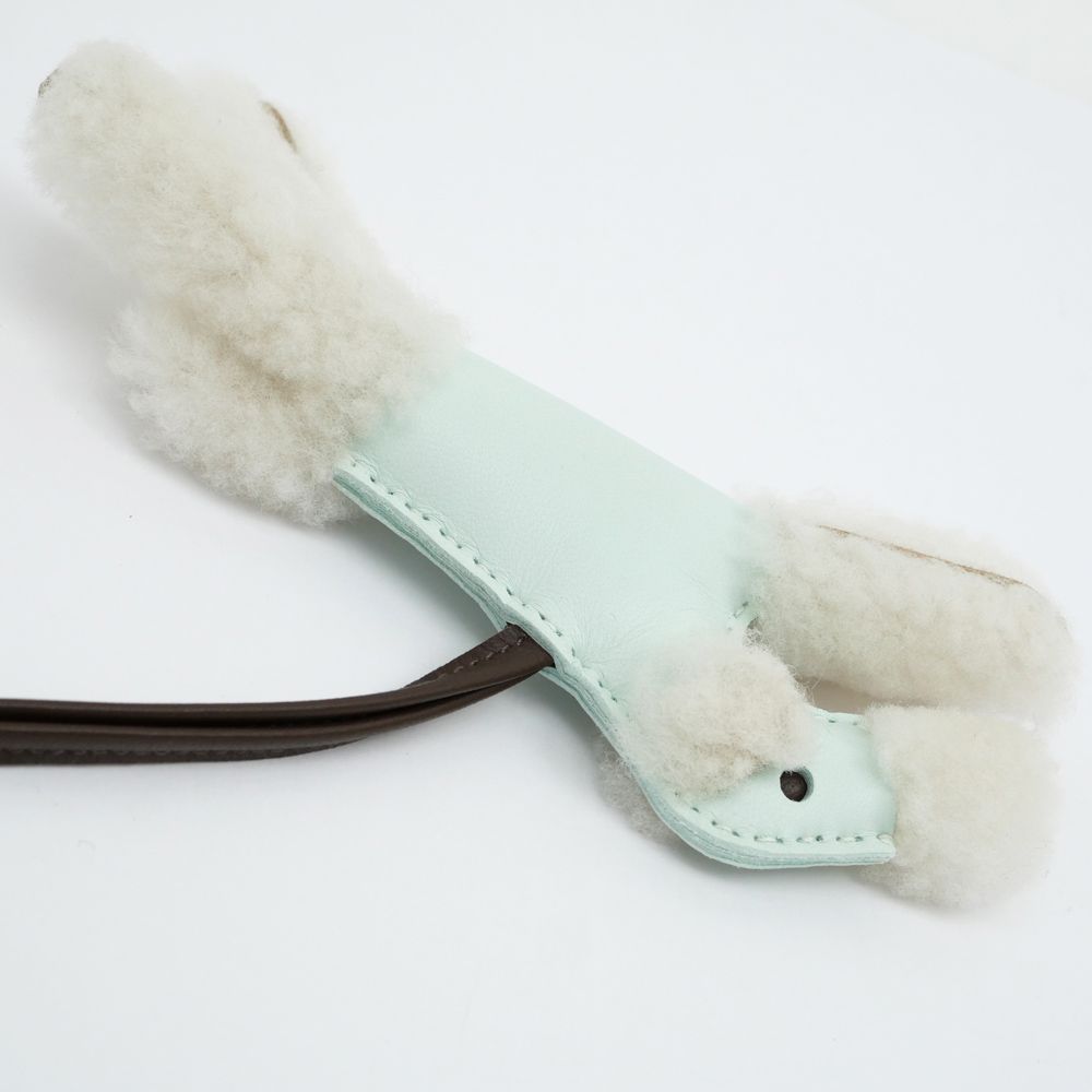 名東 エルメス バディ チャーム ヴェールペパーミント W刻印 ブルー系 バッグチャーム ムートン レザー 革小物