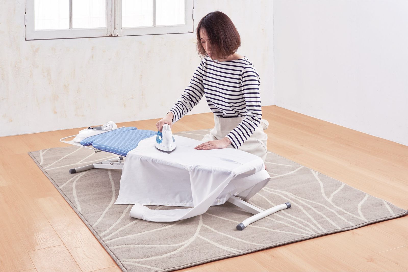 座りながらアイロンをかけられる座式タイプのアイロン台です。原産国:中国スカート、Tシャツなどの回し掛けができる掛け面のカバーに衣類の滑りを良くするアルミコートを施しました。袖口や裾など細かい仕上げに欠かせない仕上げ馬が付いています。