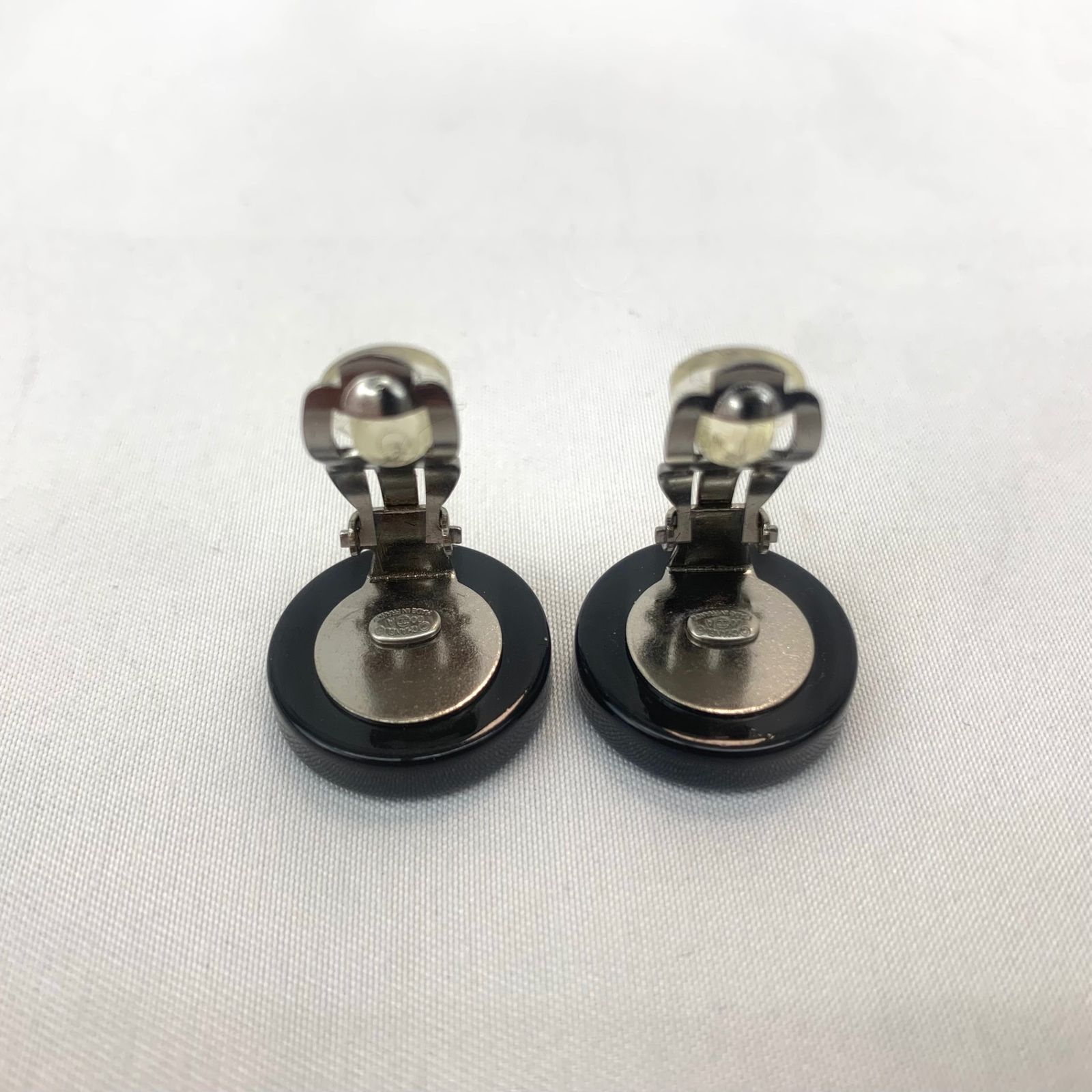 CHANEL イヤリング ロゴサークルプレート ブラック シルバー プラスチック