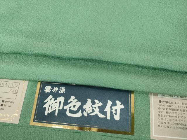 平和屋着物 上質な色無地 雲井染 老竹色 浜ちりめん 反端付き 正絹 ck