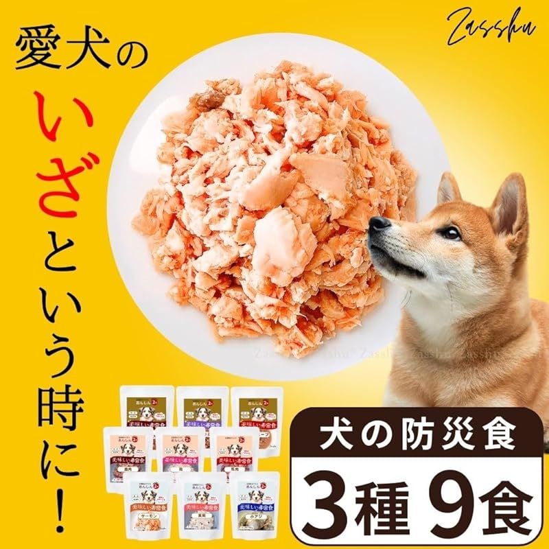 犬 防災グッズ セット お肉バラエティセット 犬用 水 本 餌 防災リュック 防災バッグ ドッグフード ウェット 非常食 大容量100 g 9食分 3種 3袋 レトルト Zasshu ザッシュ 鹿肉 馬肉 鶏 1