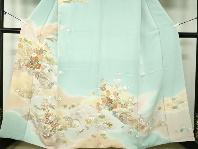 平和屋着物 創業460年 千總 訪問着 駒刺繍 御所車風景花文 暈し染め 金彩 正絹 ps
