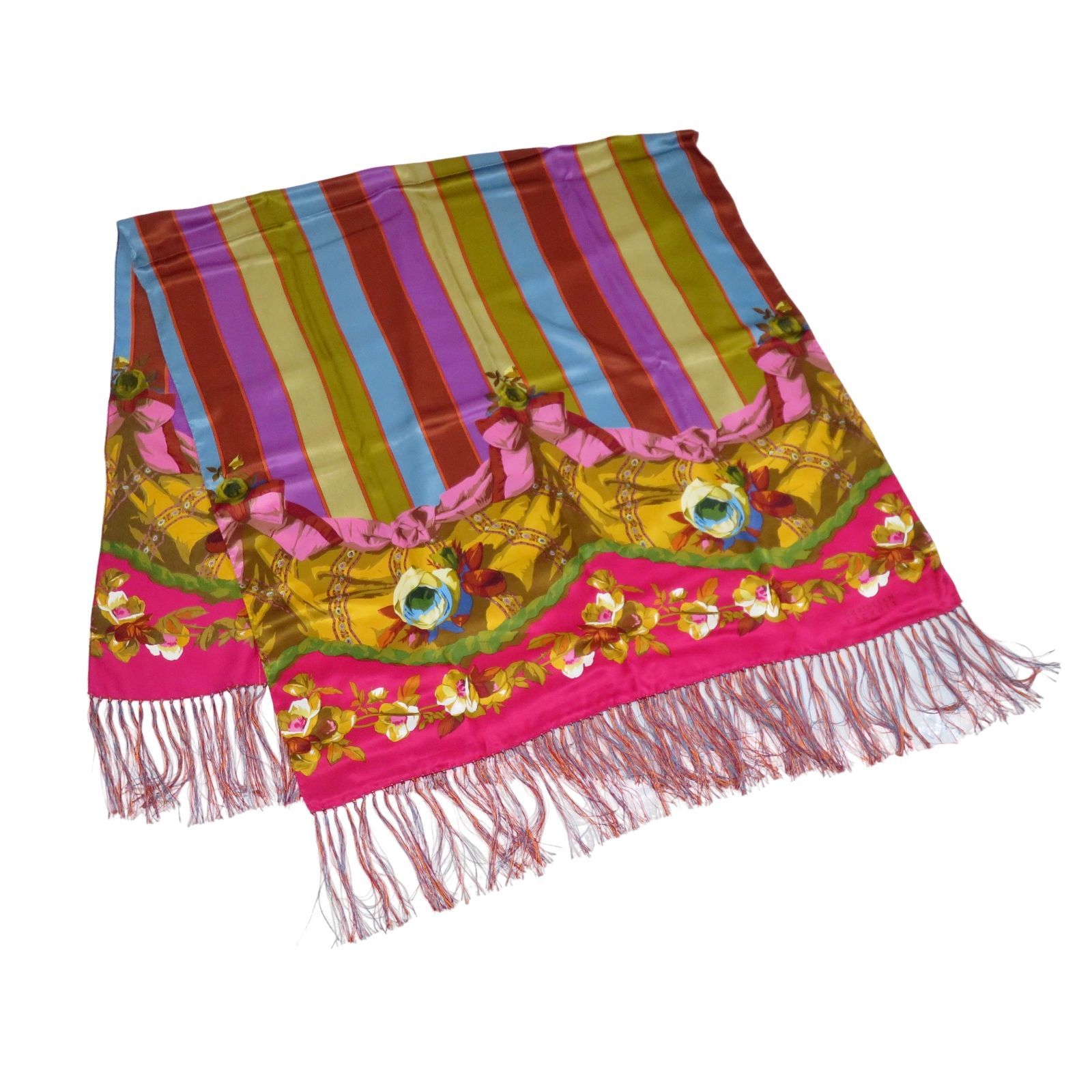 LACROIX クリスチャン ラクロワ シルクストール 大判 花柄xストライプ イタリア製 外 き rk 10362