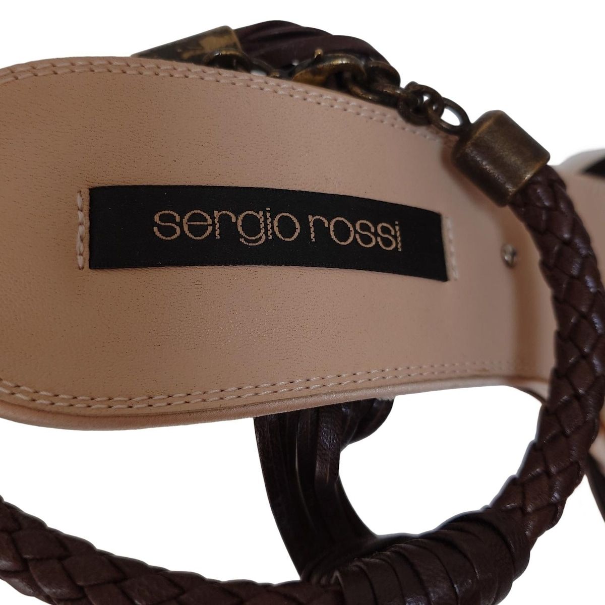 sergio rossi セルジオロッシ サンダル 35 1 2 レディース - ダークブラウン×ブロンズ×ホワイトシェル レザー