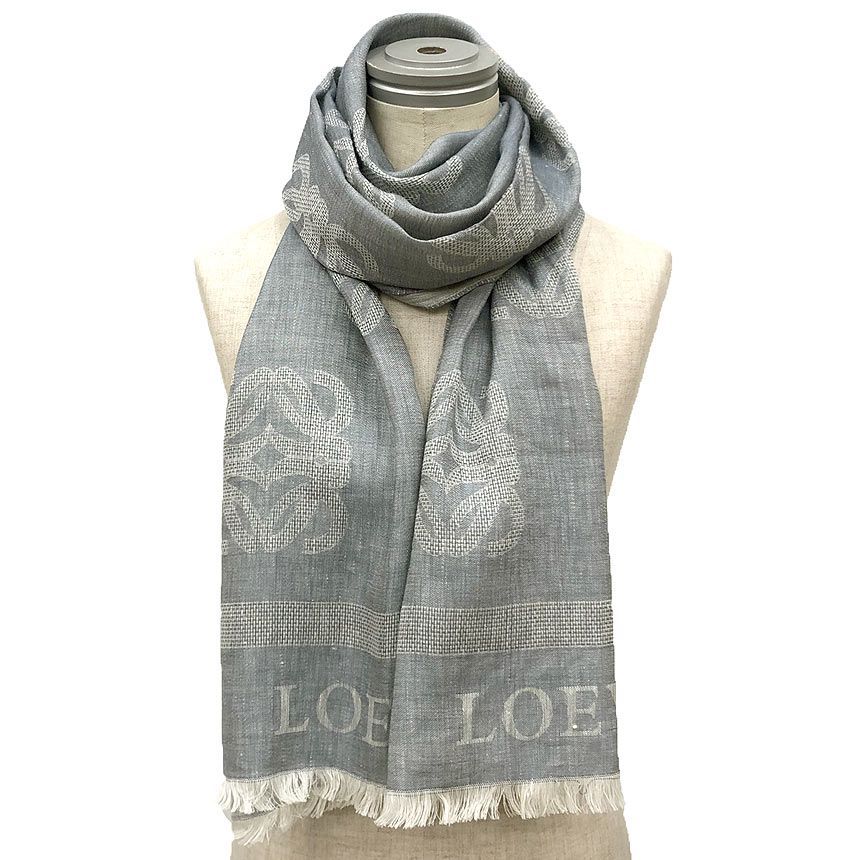 LOEWE ロエベ ストール ショール アナグラム リネン コットン ブルー aq 12165