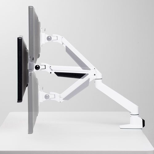 水平垂直多関節液晶モニタアーム。机上面を有効活用。画面の位置を上下左右自由自在に。