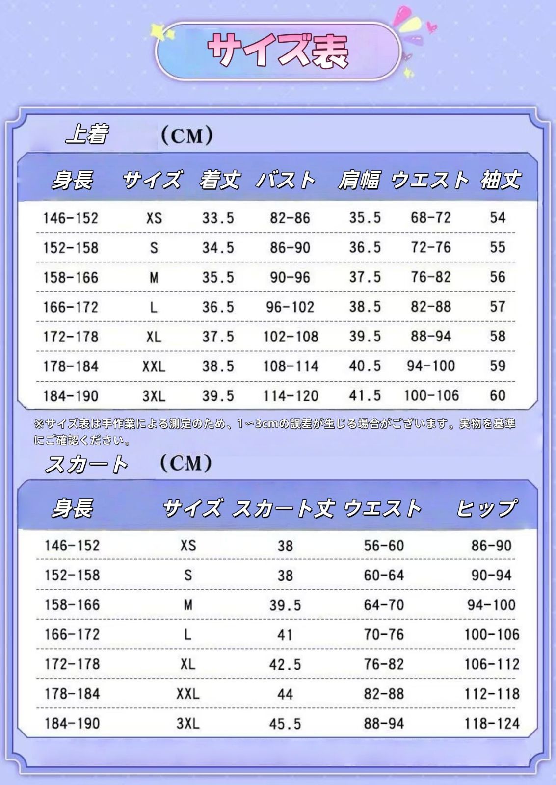 ジャケットとスカートは別サイズ選択可能です。詳細なサイズは画像をご参照ください。サイズに不安がある方はお気軽にご相談ください