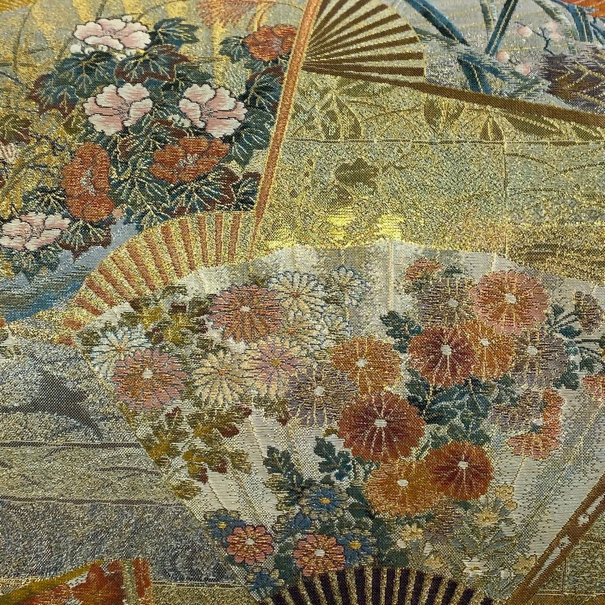 袋帯 琳派三十六華扇 箔 金色 全通 正絹