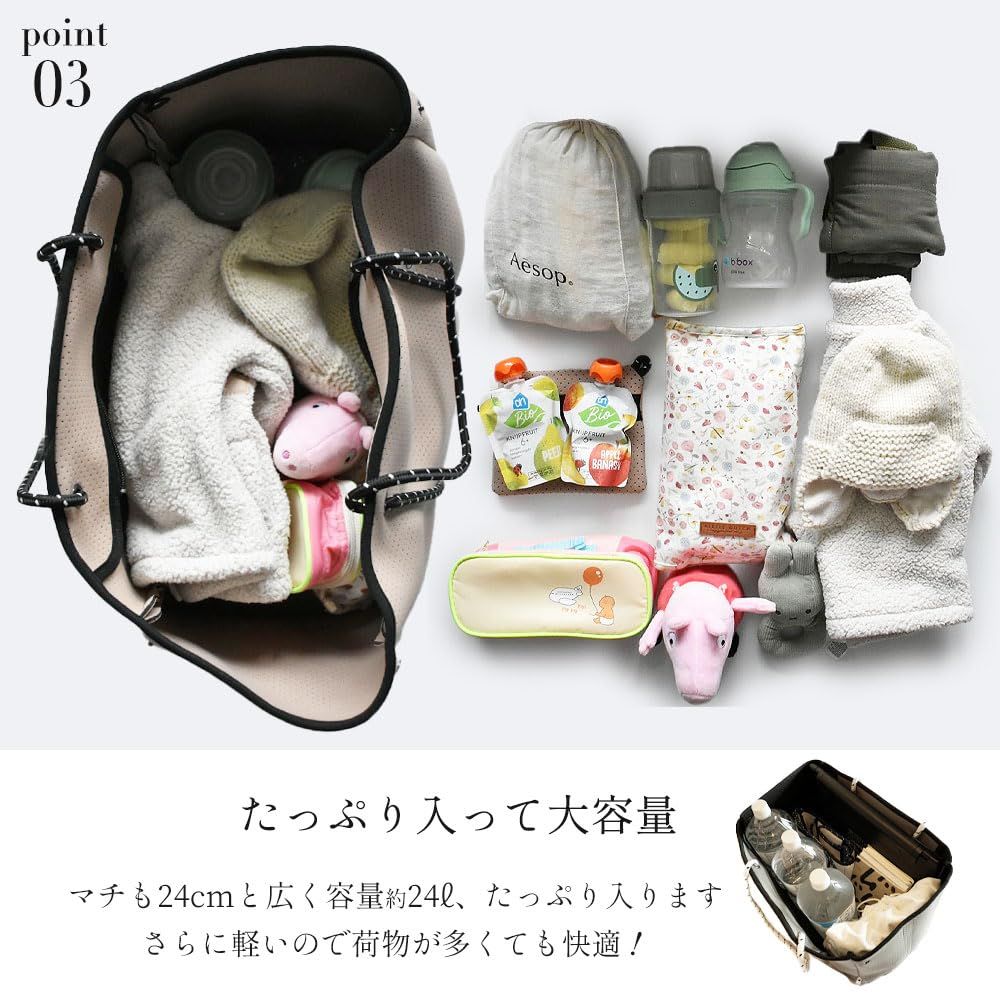 [qbag paris] ネオプレン Lサイズ ジップ付き トートバッグ ネオプレーン マザーズバッグ 大容量 大きめ 軽量 洗える カジュアル ビジネス 通勤 通学 a4 パソコン おしゃれ ファスナー付き (ブラック)