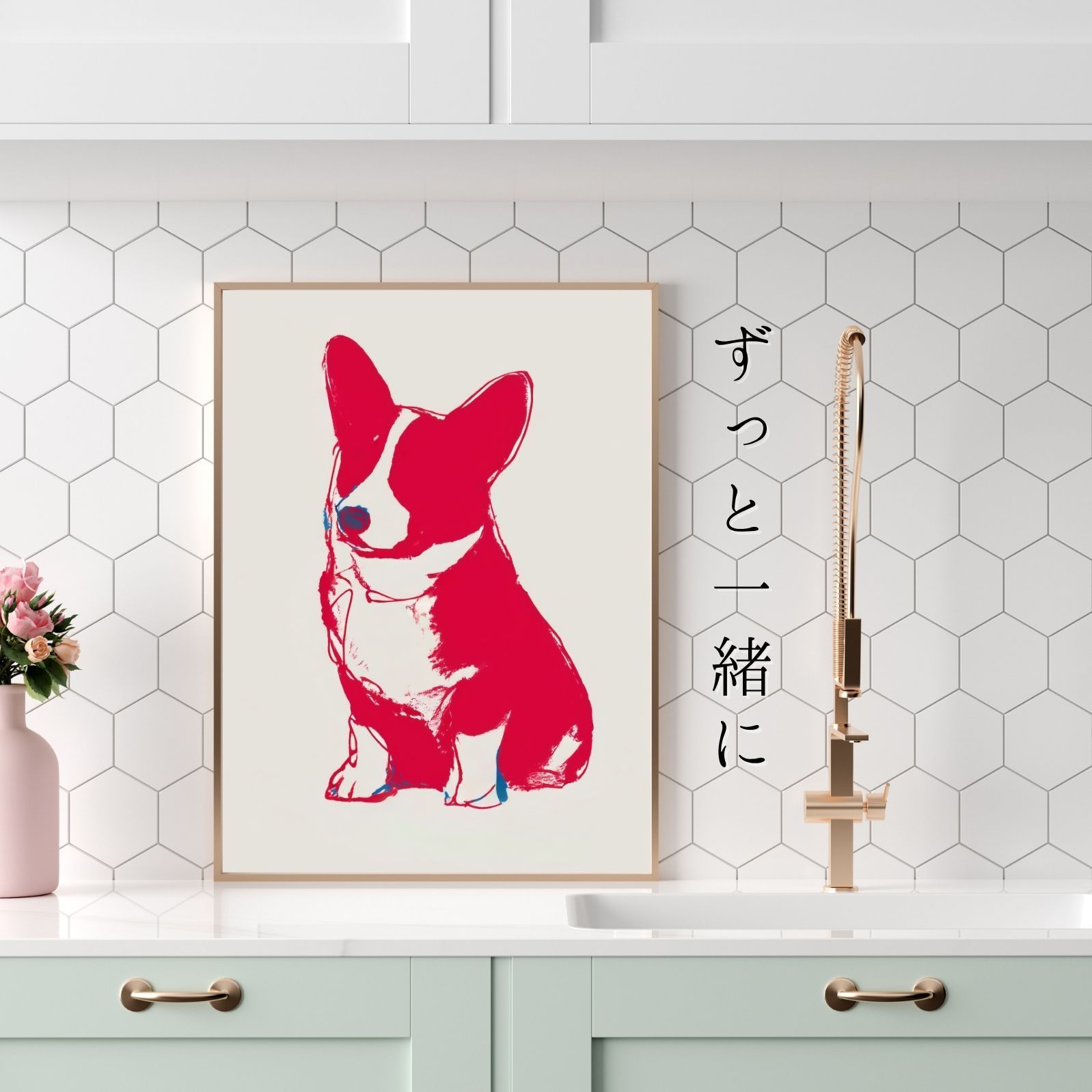 名入れOK Red Line - ウェルシュコーギー犬 No.1 アートポスター ペットロス 北欧モダン ミニマルインテリア カフェスタイル