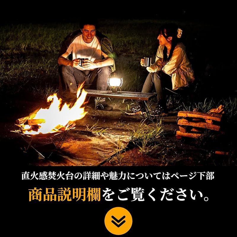 【直火感覚の焚火スタイル】焚火台のデザインをあえてシンプルにすることで、より直感的に焚火を楽しめることをコンセプトにこの焚火台を設計しました。ゆとりあるサイズで市販の薪もそのまま焚べることができます。