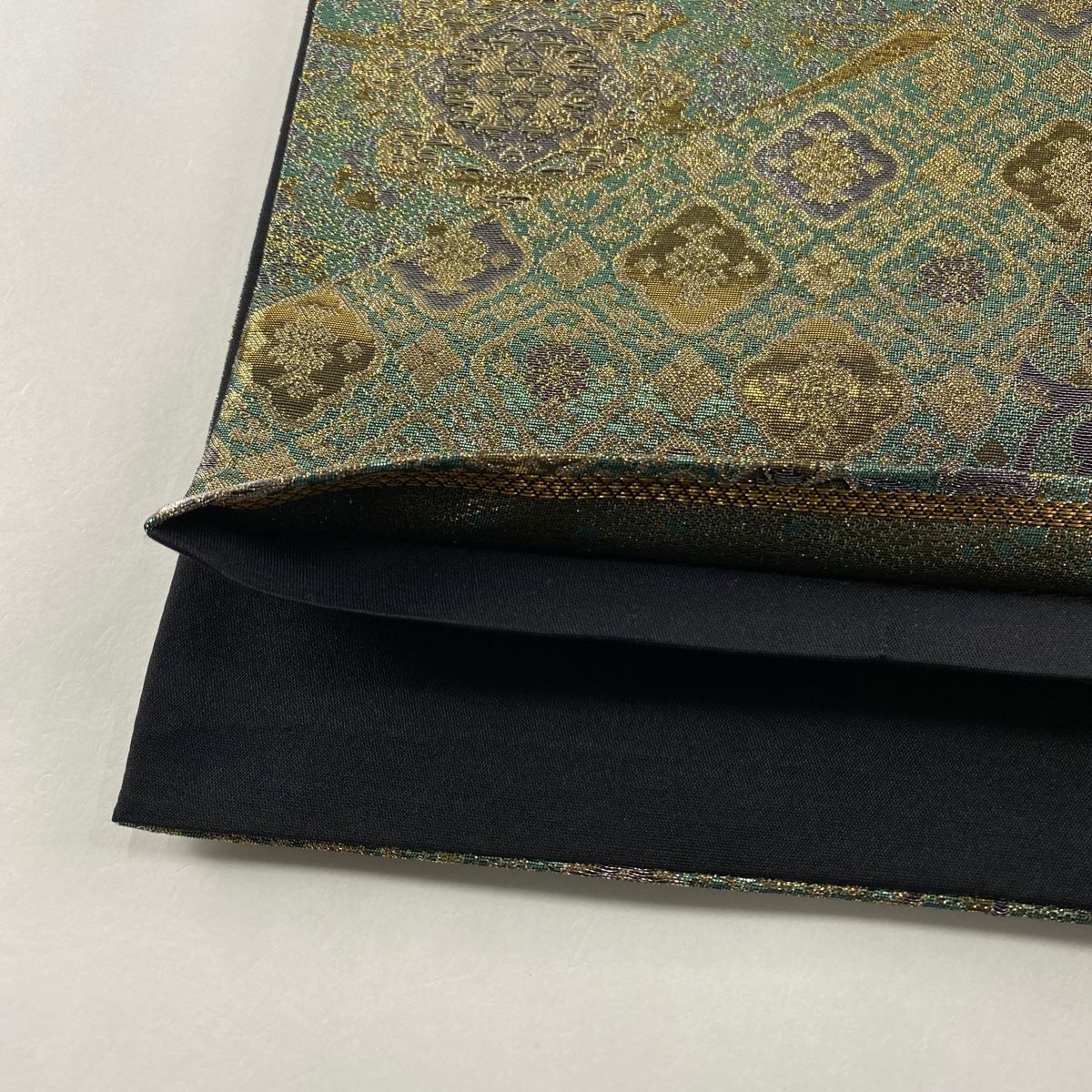 袋帯 秀品 華文 草花 金糸 箔 緑 六通 正絹