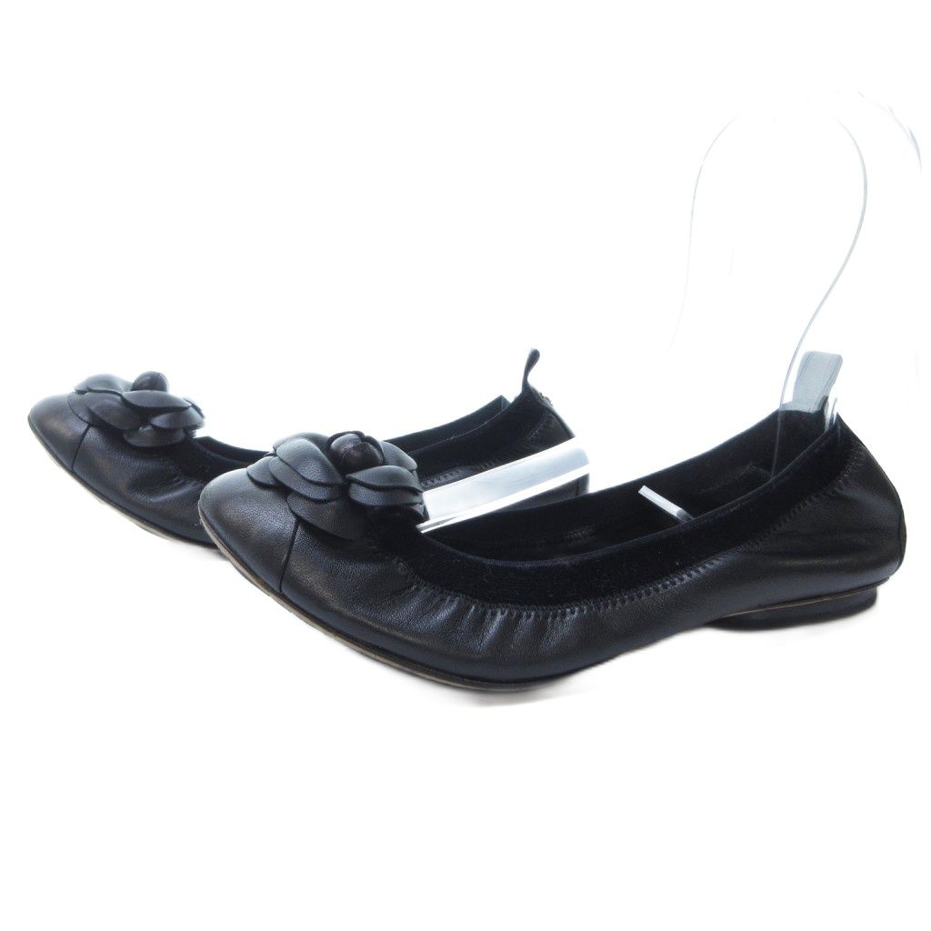 シャネル CHANEL カメリア レザー バレエシューズ フラットシューズ 黒 ブラック 約24.5 cm IBO 81