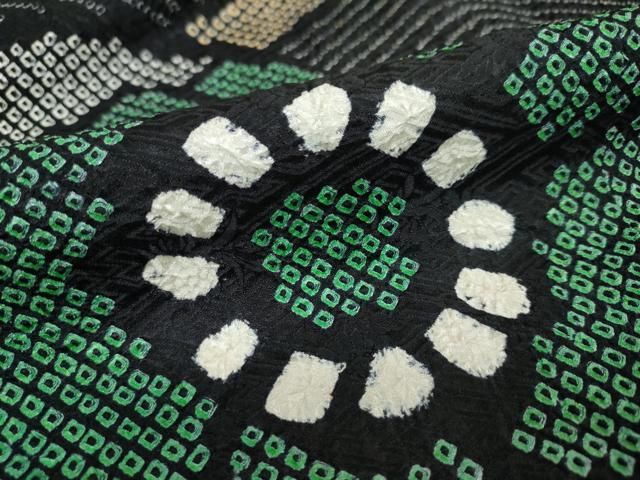 平和屋着物 豪華振袖 総絞り 草花文 黒地 正絹 ud