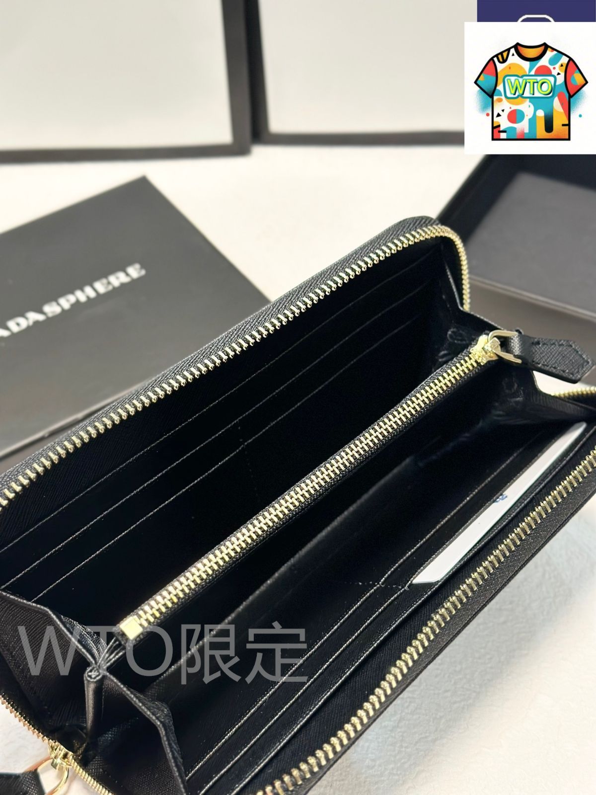 プラダ (Prada) の爆款「クロスグレインレザーウォレット」が登場! クラシックな黒色を採用し、サイズは約 20×10cm で、実用的な収納力と持ちやすさを兼ね備えています。