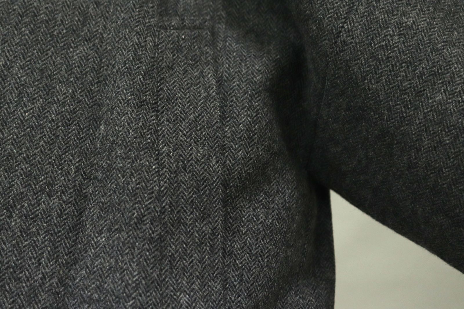 お色はダークグレーのヘリンボーン柄でございます。