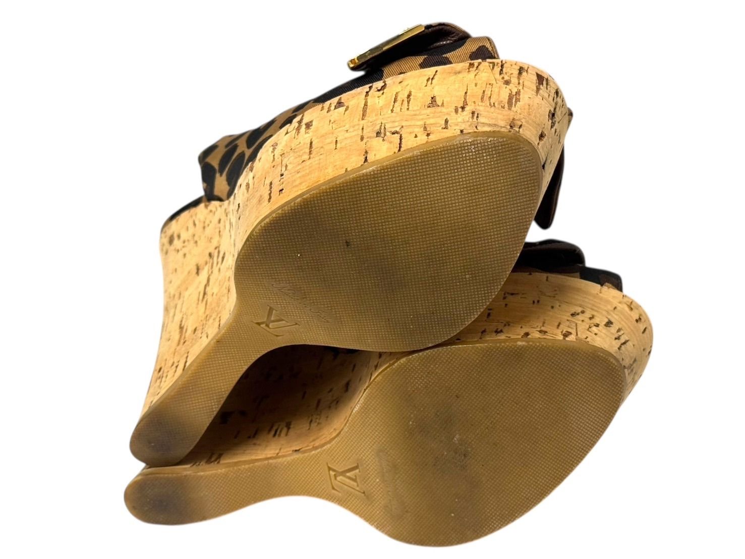LOUIS VUITTON ルイヴィトン レオパード柄 サンダル ウェッジソール ブラウン ブラック ゴールド金具 サイズ34 1 2 4 b 006409