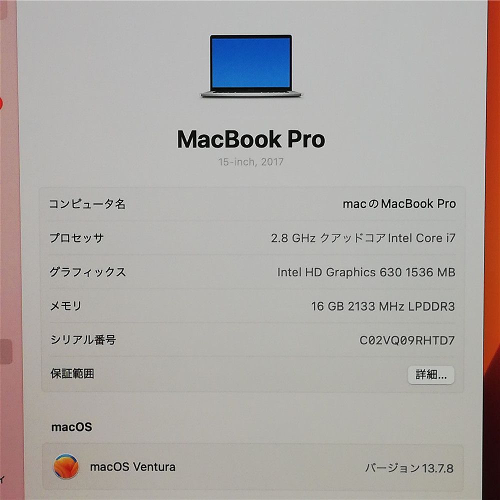 アップル Apple MacBook Pro 14 3 A 1707 シルバー Core i 7-7700 HQ 2.8 GHz 16 GB 高速SSD 15.4インチ MacOS 13.7 即使用可
