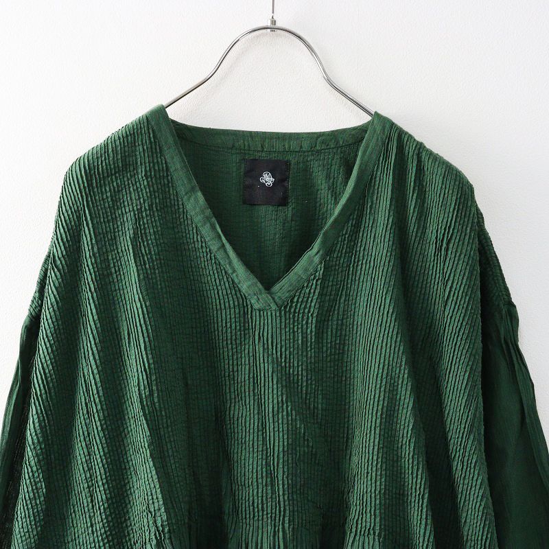 【品名】2024AW メゾンドソイル maison de soil 80s ORGANIC VOILE STRIPE V-NECK PULLOVER DRESS with MINI PINTUCK 2\グリーン