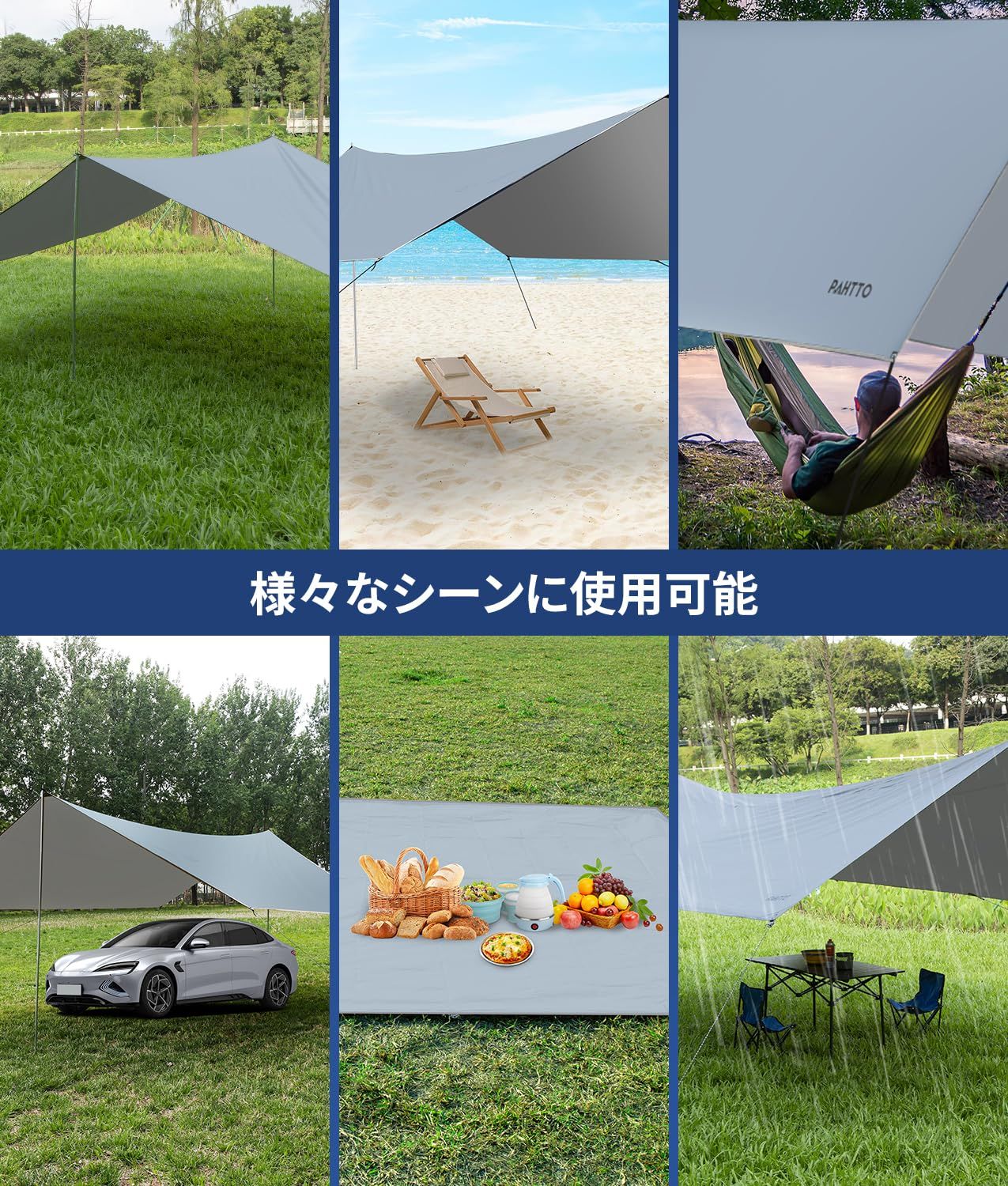 多機能性】:当社の3.6mx4.8mハンモックタープは、マルチ機能SUN/RAIN/WIND/SNOWシェルター、ハンモック用レインフライ、グラウンドシート、またはピクニック/ビーチマットとして、一年を通じて使用できます。キャンプ、ハイキング、クライミング、ピクニック、ビーチ活動などに最適です。