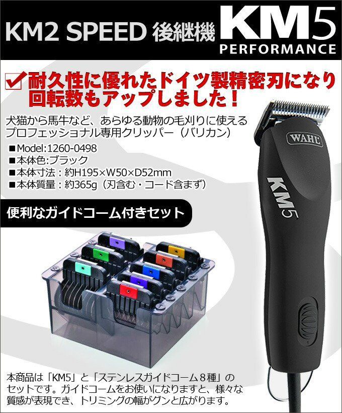 セット WAHL KM 5 ガイドコーム パフォーマンス ステンレスアタッチメント8種のセット ペット用コード式バリカン 犬用 大型犬 馬 プレゼント Newサビでなーず2&ラージパウプリントトート 97782