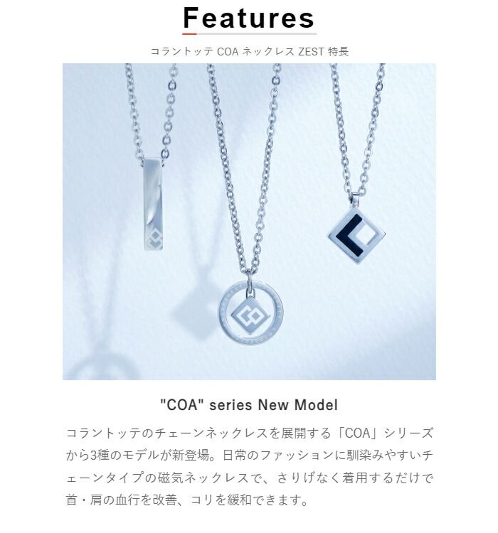 ファッションの一部になるColantotteのチェーンネックレスが登場!ファッションの一部としてさりげなく着用するだけで首・肩のコリケアができるチェーンタイプの磁気ネックレス。