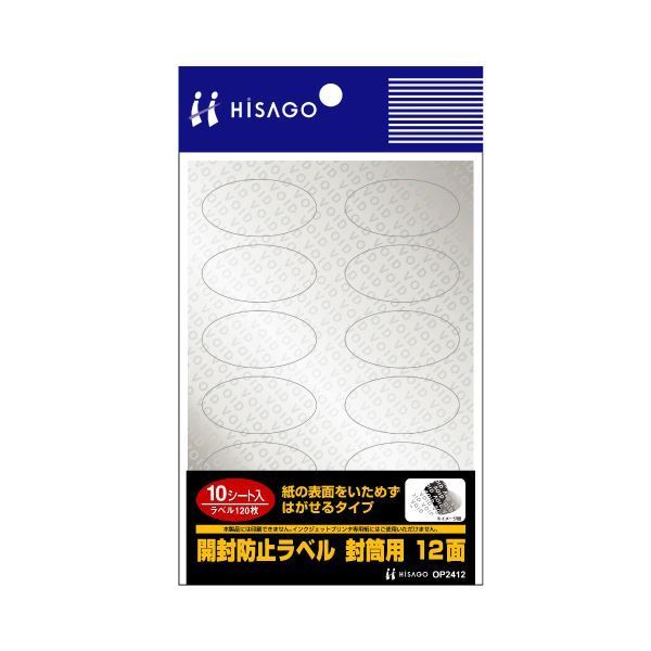 まとめ ヒサゴ開封防止ラベル 封筒用 はがきサイズ 12面 だ円形 40 20 mm OP 2412 1冊 10シート