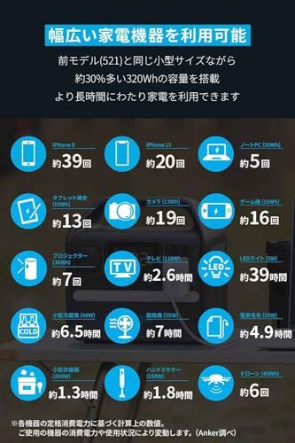 製品全体が長寿命:ポータブル電源を構成する各要素を最適化することで製品全体の長寿命化を実現するAnker独自の【InfiniPower設計】を採用し、約10年間安心してご使用いただけます。