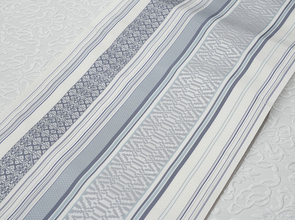 白地にグレー・ブルー縞の全通柄です。