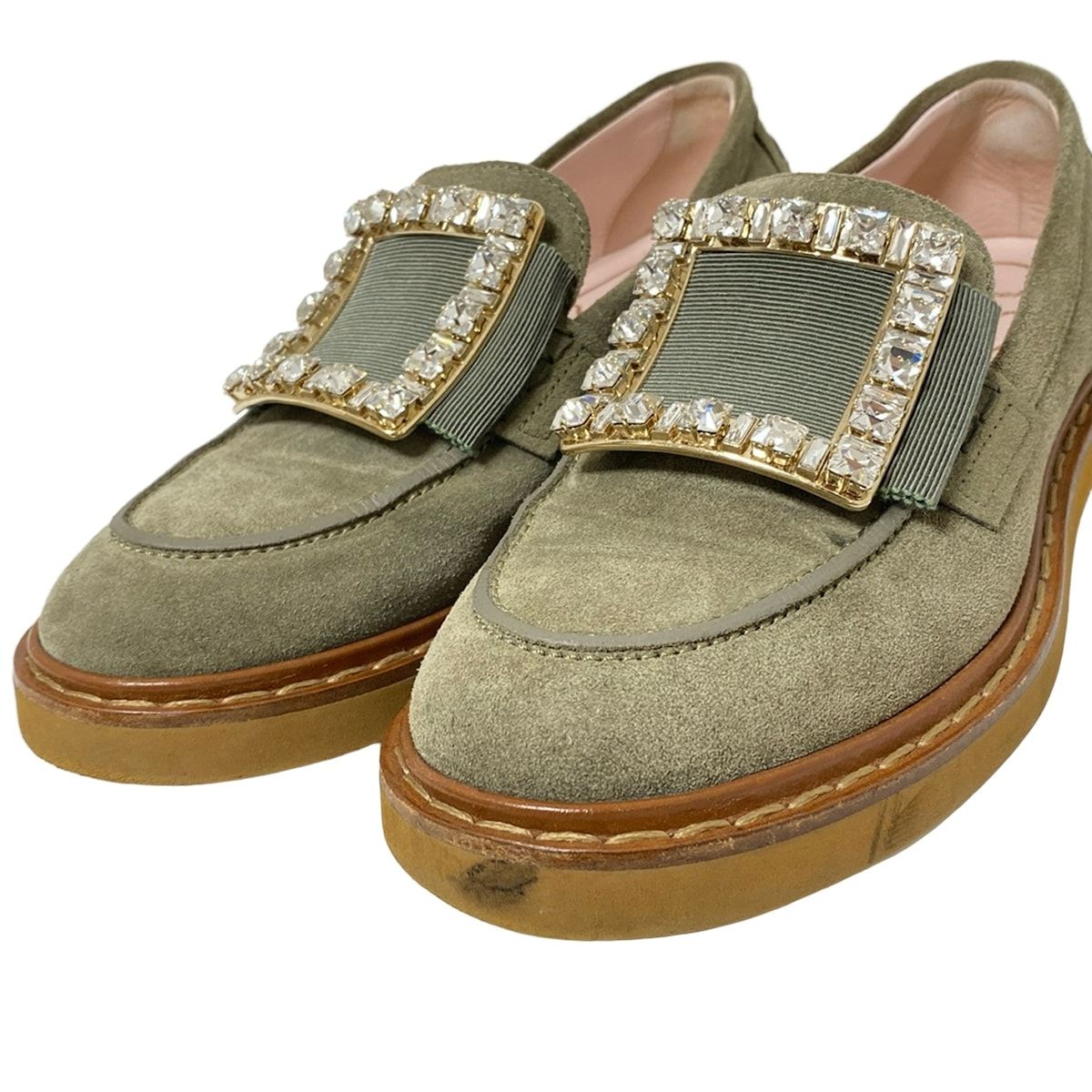 RogerVivier ロジェヴィヴィエ ローファー 37 1 2 レディース ヴィヴ レンジャー カーキ ビジュー