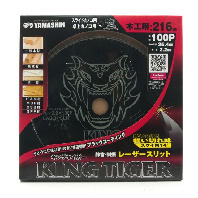 種類2 2 山真製鋸 Y s 木工用 チップソー キングタイガー 216 mm 100 P MAT KT 216_3 ブラックコーティング レーザースリット Uスリット 丸のこ 電動マルノコ スライドマルノコ 卓上マルノコ