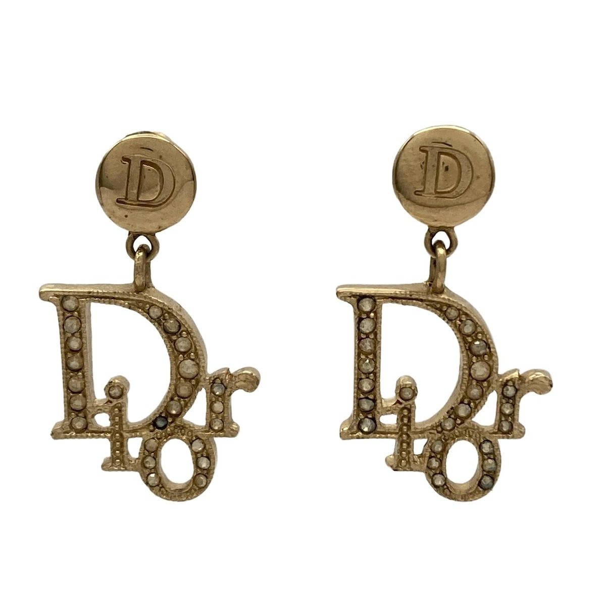 DIOR ChristianDior ディオール クリスチャンディオール ピアス - D 60823 ゴールド×クリア Diorモチーフ