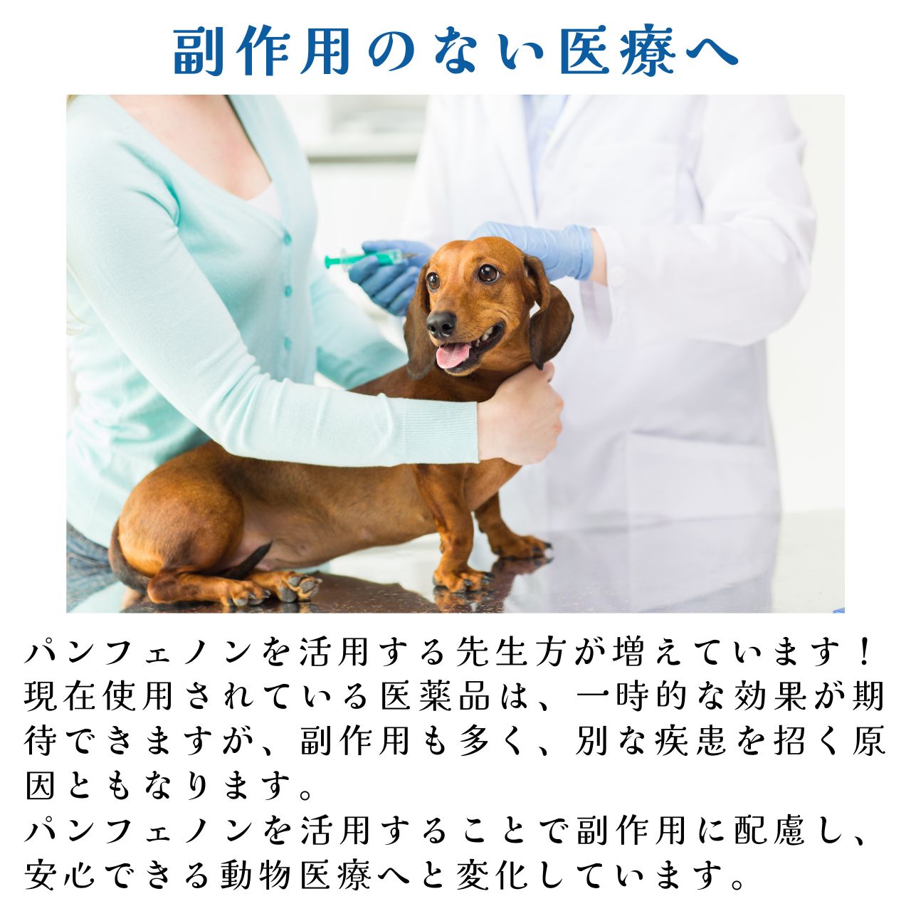 パンフェノンは全国4,000の動物病院、トリミングサロンで取り扱われている、信頼と実績の動物用サプリメントです。10年以上多くの犬、猫、動物に愛されてきました。