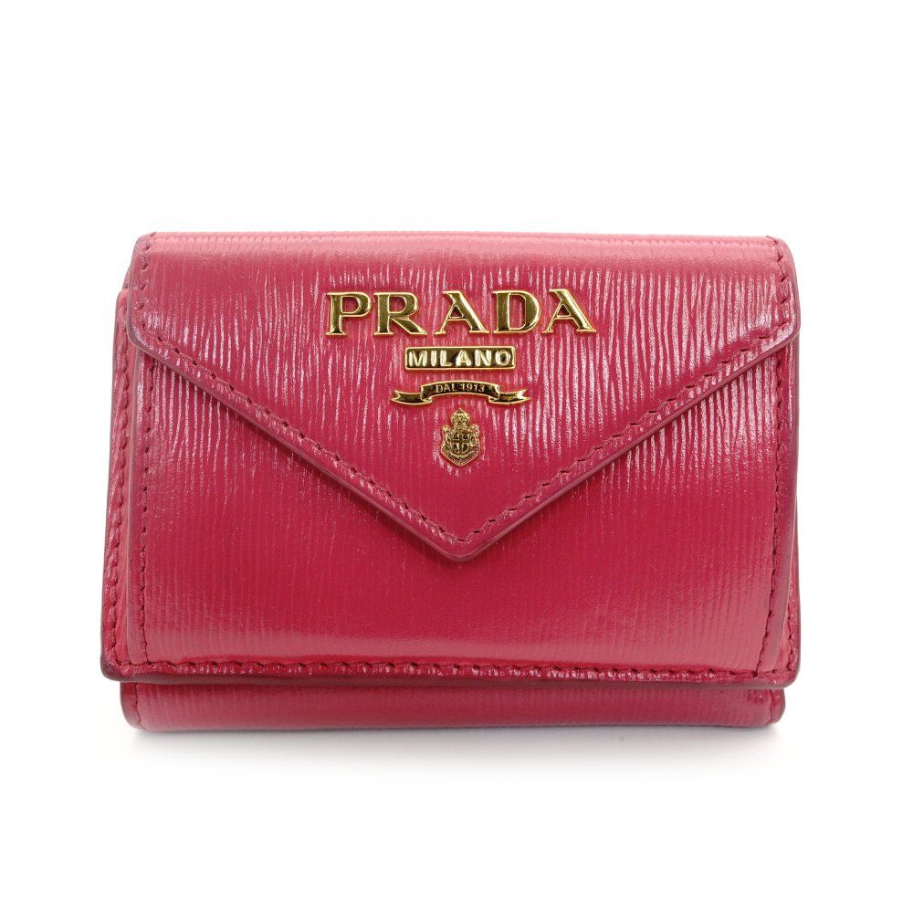 プラダ PRADA コンパクト ウォレット 三つ折り財布 サフィアーノ レザー ピンク ミニ財布 ロゴ き 7-7-514