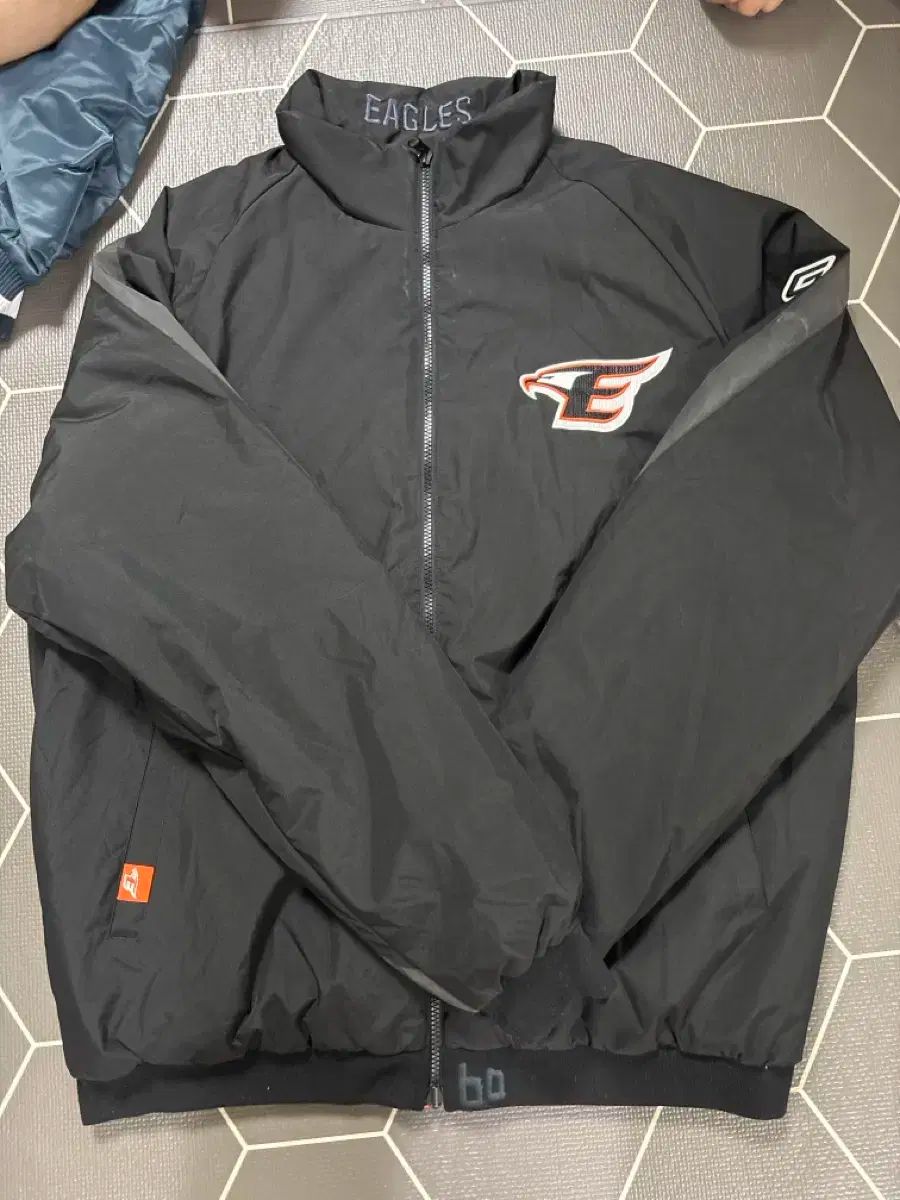 これは黒いハンファイーグルスの野球ジャンパーです。胸にはチームロゴが大きく埋め込まれています。首の後ろにもチーム名が刺繍されています。別途以上ご不明な点がございましたら、すぐに安全なお支払いをお願いします!