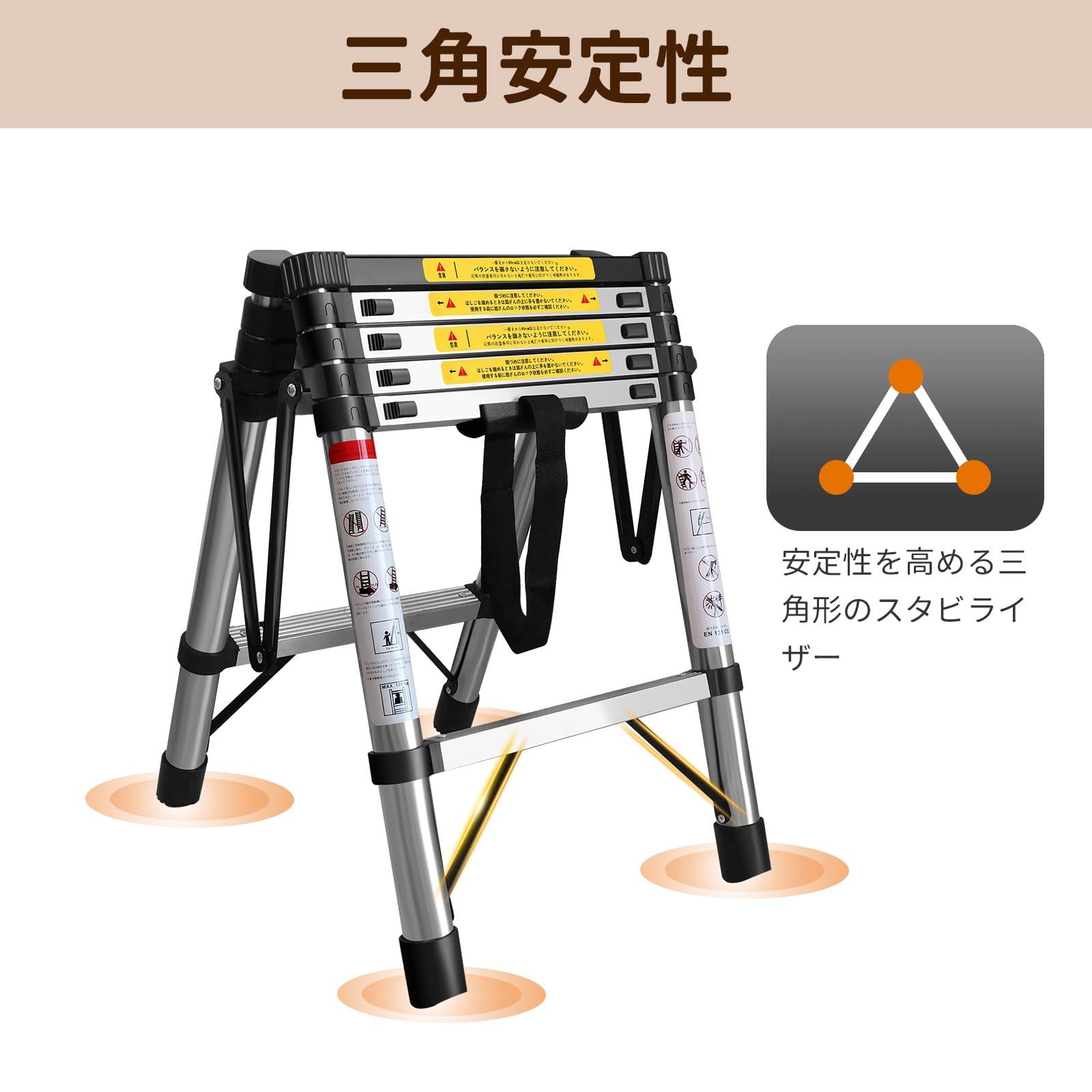 【ワンタッチ安全ロック】はしごのステップには、それぞれ安全性と耐久性に優れた安全ロックが付いています。様々な高さのニーズに合わせて、自由に調整することができます。各ステップはロックで固定するので、安心して乗り降りできます。詳しい日本語説明書付き、使用時非常に安全です。