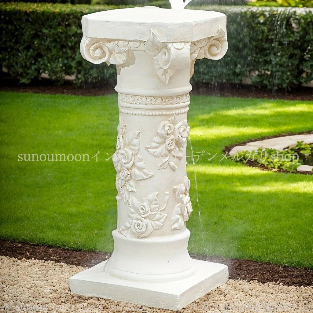 美しいホワイトカラーが際立つ「ローマ風柱」は、庭やガーデンのスペースを華やかに演出するアイテムです。ローマ風の柱デザインは、古代建築の美しさを実感させ、彫刻に施された薔薇の模様は優雅さと気品を表現しています。