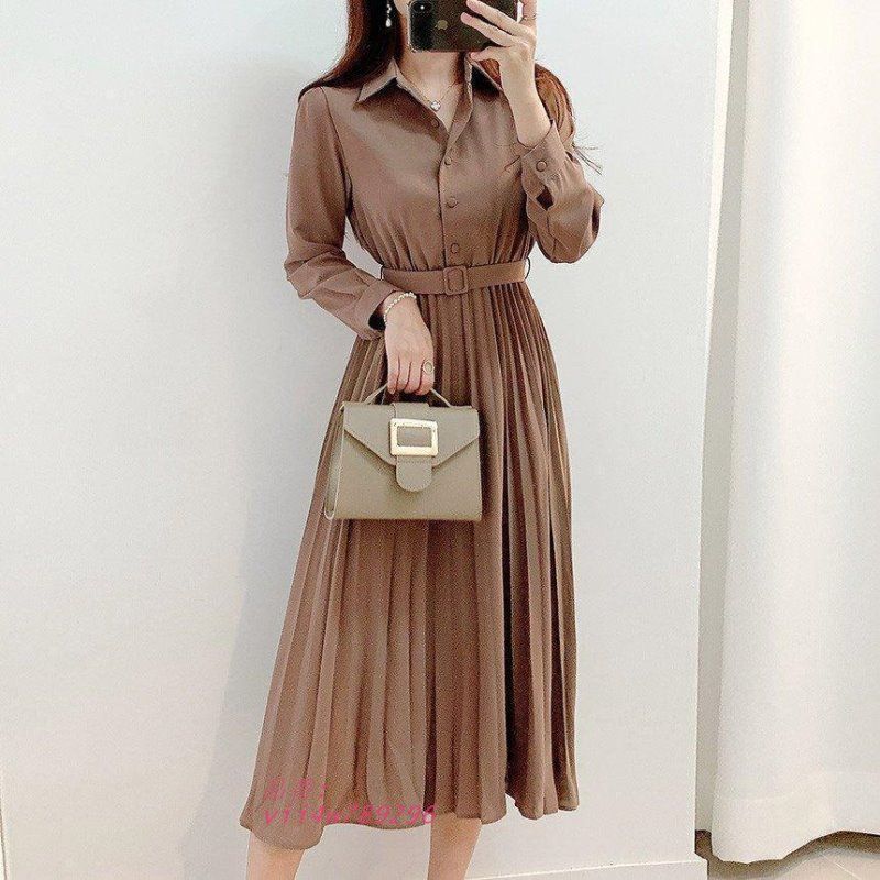 きちんと感のあるドレスは1着持っていれば間違いなし。長袖でこれからの秋から冬まで、また来年の春にもご愛着頂けるプリーツワンピースです。