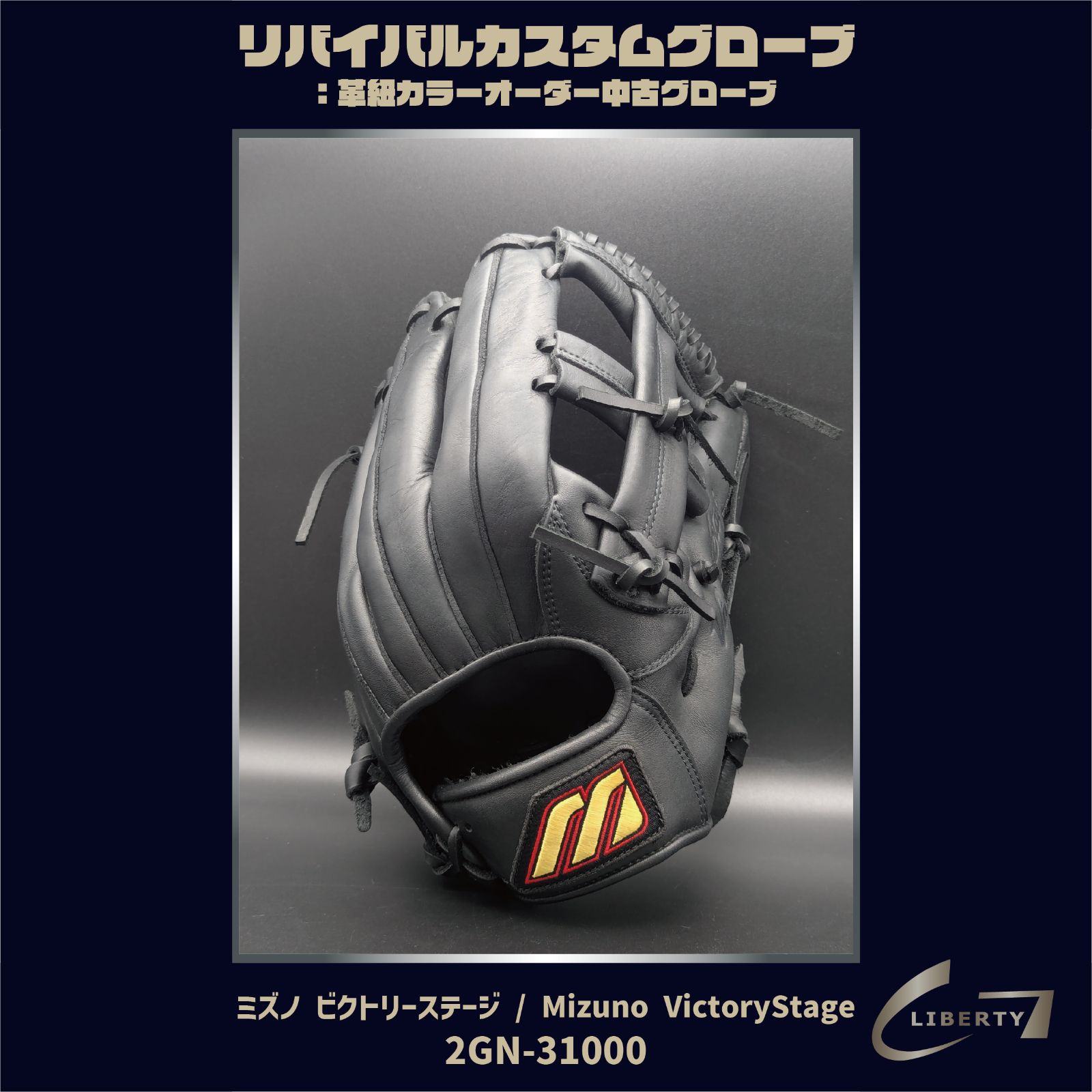 小指2本型付け-全紐交換済 ビッグMラベル 軟式 ミズノ ビクトリーステージ Mizuno VictoryStage 2 GN-31000 リバイバルカスタムグローブ 本体 ブラック | G-LOVE LIBERTY
