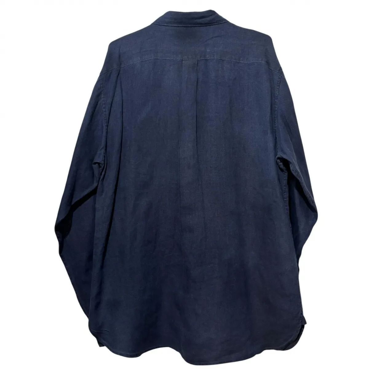 00 s インド製 OLD GAP L|S LINEN Shirt L ネイビー 紺 オールドギャップ リネンシャツ マチ付き 長袖 古着