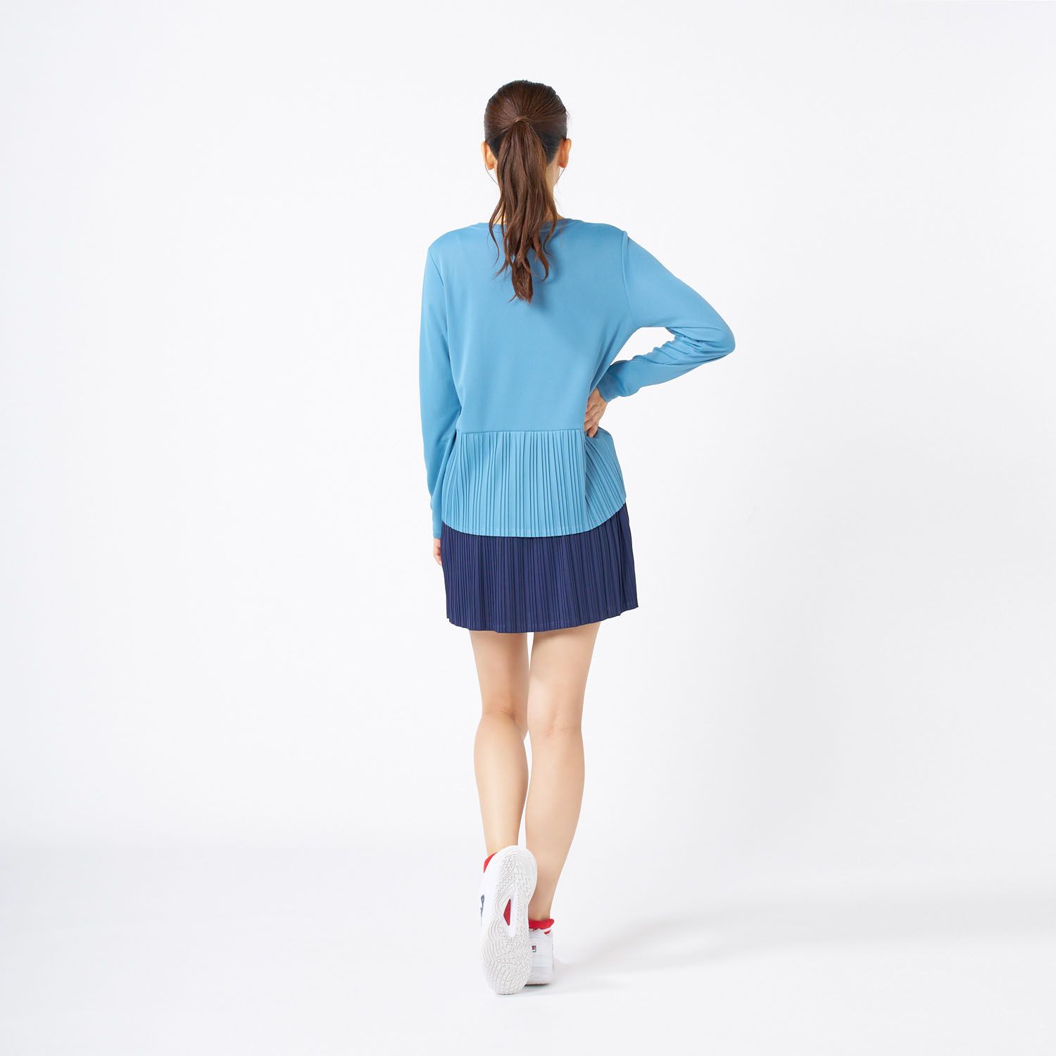 フィラ FILA テニス ロングスリーブシャツ レディース ウィメンズ 女性 大人 長袖 ロンT トップス ウェア ロゴ ワンポイント プリーツ スタイルアップ 部活動 クラブ スクール EL0206