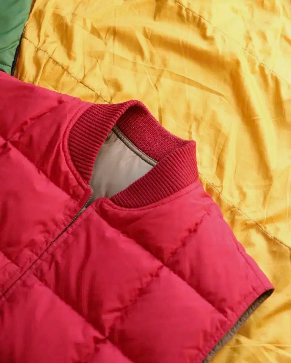 Comment:エディー・バウアーで90年代に生産されたカナディアン グースダウン ベストです。トーンダウンされたベージュ/バーガンディ COLOR のリバーシブルで、バーガンディ部分はコットン シェル、ベージュ部分はナイロンが 使用されており、より幅広くスタイリング可能な個体です。全体的に 使用感 感じられない ミント級 コンディション 維持しており、表記サイズ Mens M で ルーズには 100、 정사이즈(レギュラーサイズ) 103~108 サイズ着用の方々に オススメいたします。
