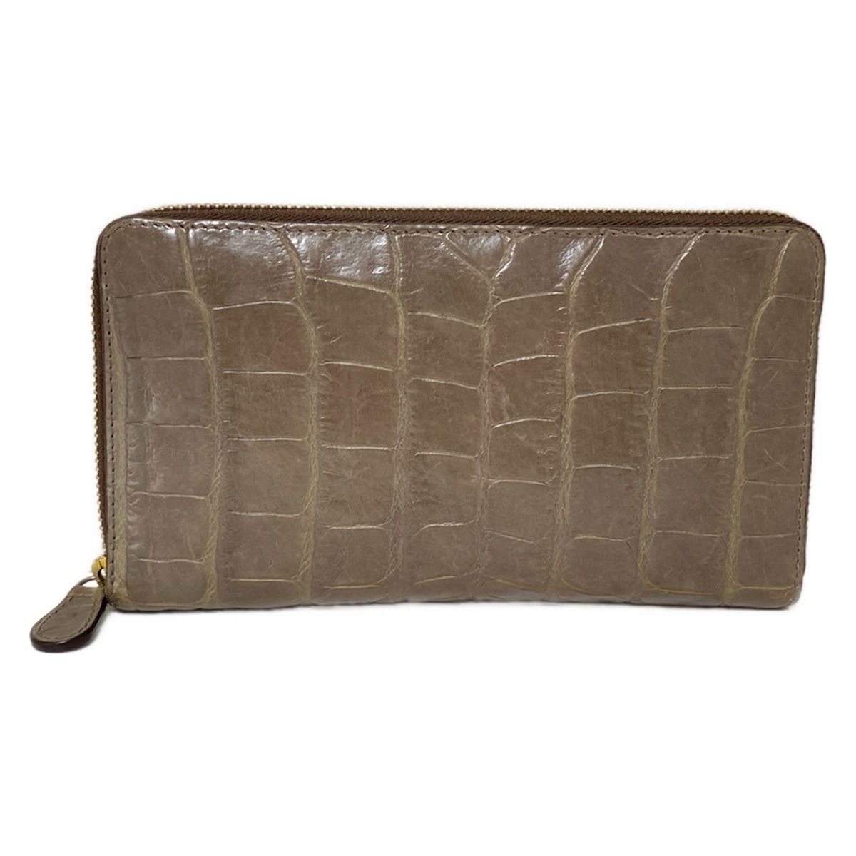 J-MDavidson ジェイ-エムデヴィッドソン 長財布 - グレーベージュ クロコダイル型押し加工 ラウンドファスナー レザー
