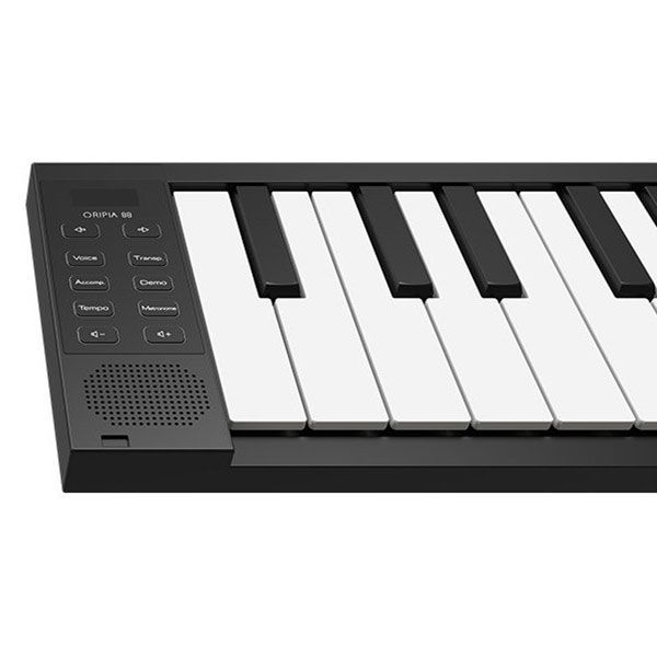 長年電子楽器のOEMメーカーとして実績のある台湾のTAHORNG(タホーン)製より折りたたみ式電子ピアノ/MIDIキーボード・オリピア88の新色ブラックが発売。コンサートグランドピアノと同等の鍵盤数である88の鍵盤を持ちながら、コンパクトに折りたたんで持ち運ぶことができる画期的な電子ピアノです。本体にスピーカーと充電式のバッテリーを内蔵しており、野外などでの演奏にもご使用いただけます。さらにMIDIキーボード、MIDI音源としても使用でき、DTMの入力用キーボードとしてもお使いいただけます。
